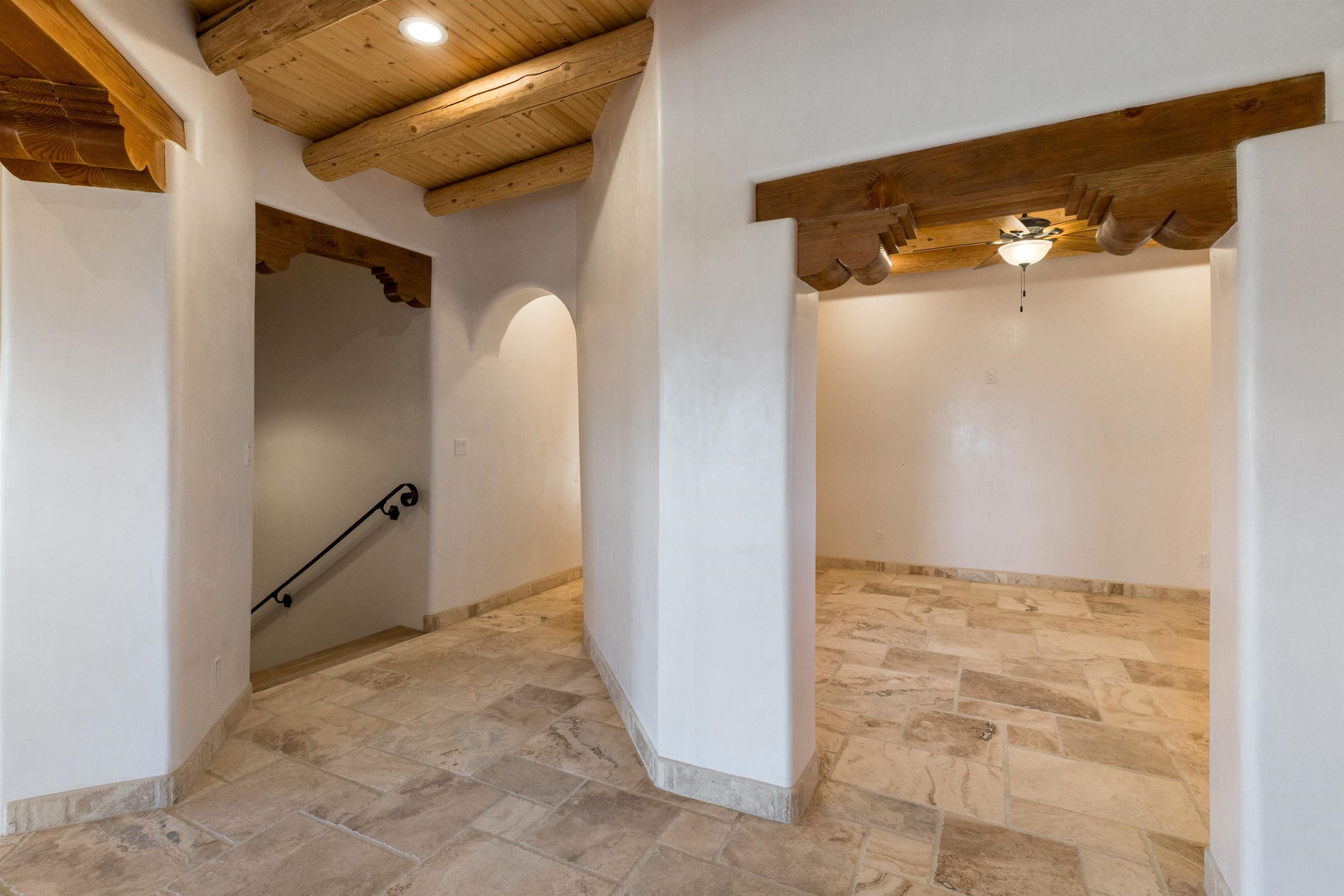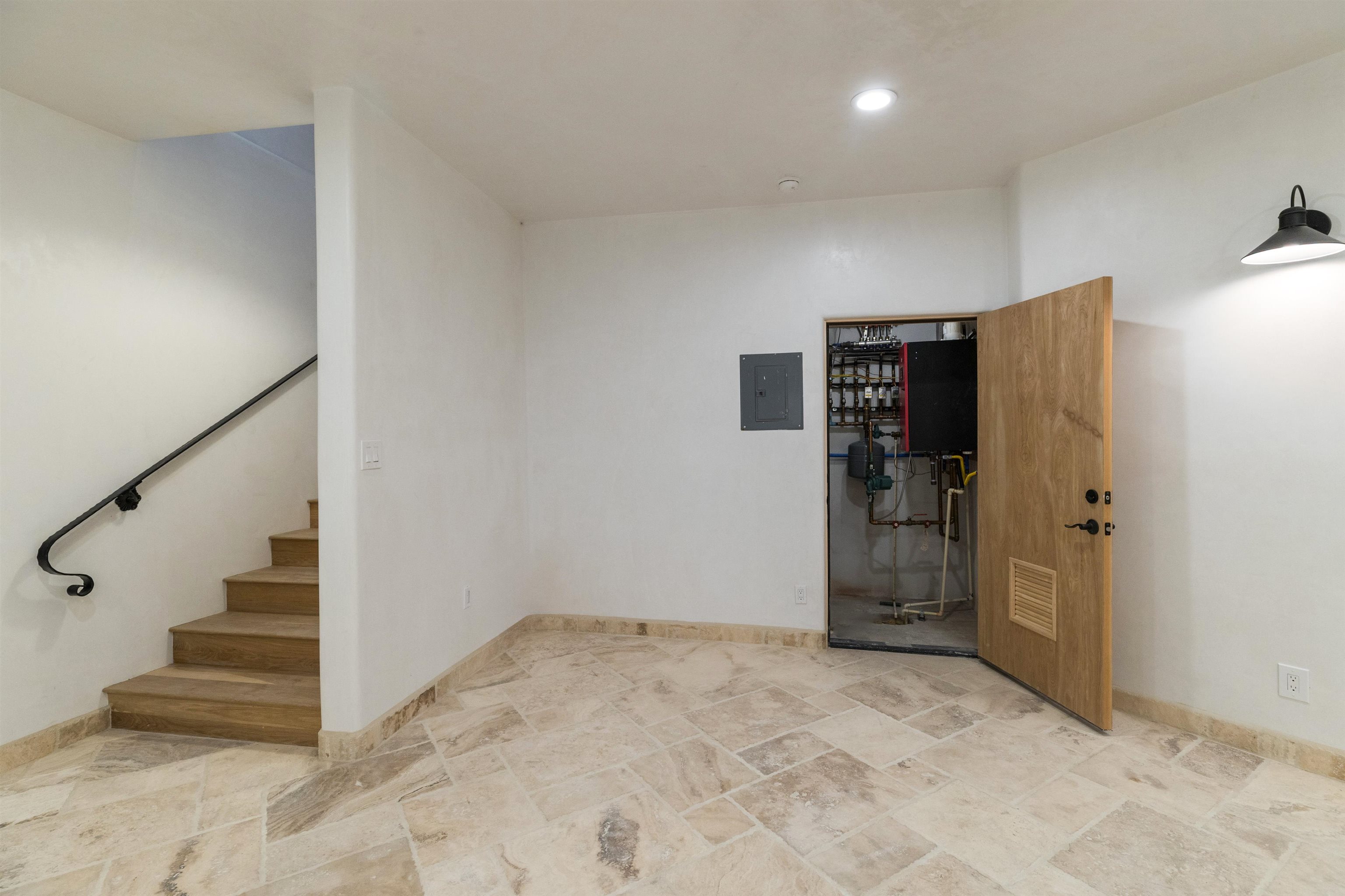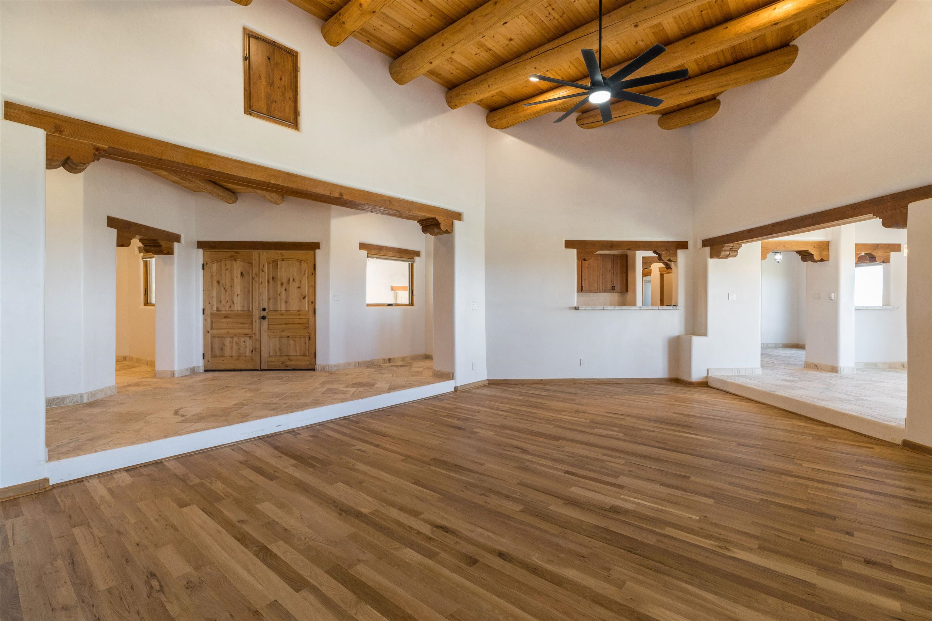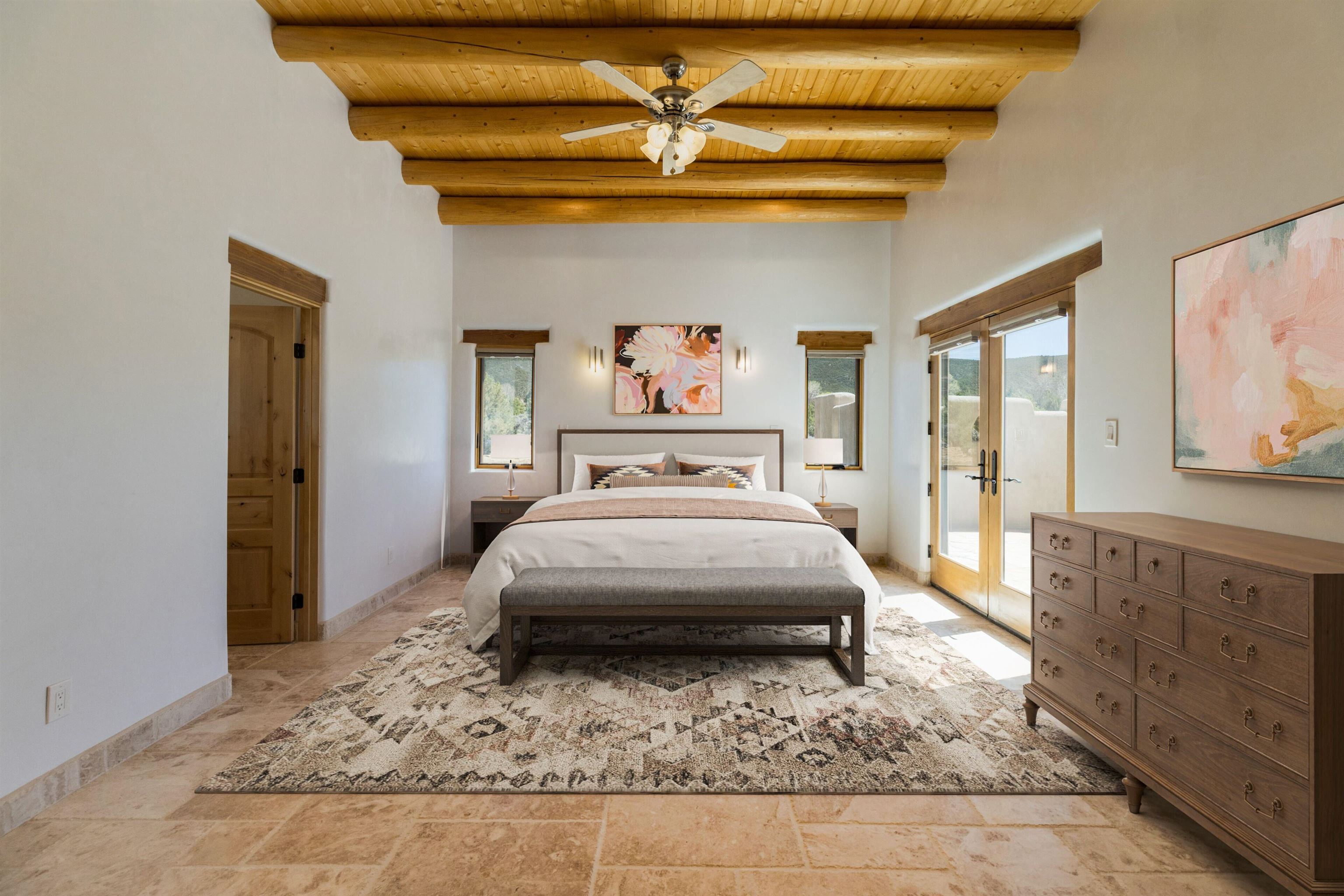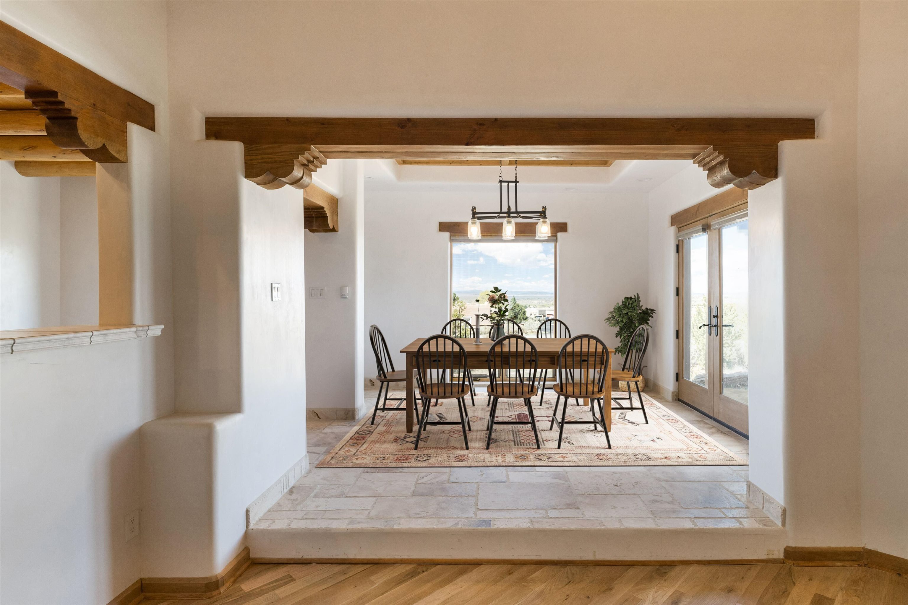 Welcome to your brand-new sanctuary blending authentic Southwestern design with refined modern touches at 1411 Maestas Road, a never-lived-in custom home set on a one-acre lot in the coveted Weimer neighborhood, offering immediate access to healthcare, shopping, and daily essentials while still feeling peacefully private. From the moment you step inside, you’ll feel the quality and care poured into every detail. Travertine natural stone flooring runs throughout the home, paired with rich oak hardwood floors in the great room and stunning viga and tongue-and-groove ceilings, hand-carved corbels, and custom wrought-iron railings that bring timeless Taos character to life. Radiant in-floor heating with three separate zones keeps the home cozy year-round with effortless efficiency. The kitchen invites connection and conversation with its open floor plan design, complete with quality finishes, stainless steel appliances, a gas cooktop, breakfast nook, full dining area, beautiful views, and a generous walk-in pantry for easy everyday living. With blinds already installed, this home is truly move-in ready. Thoughtfully designed with both beauty and flexibility in mind, the home offers two bedrooms, two full baths, and two half baths, along with a versatile flex space that can function as a home office or an additional bedroom depending on your needs. An oversized laundry room with front-load washer and dryer and a finished basement entertainment space with egress and a half bath provide additional comfort and adaptability…ideal for guests, movie nights, or a creative studio. Both bedrooms feature direct outdoor access. The primary suite is a peaceful retreat with a private courtyard, a travertine walk-in shower, an oversized soaking tub, and a spacious walk-in closet. Step outside and take in sweeping Taos Mountain views from the wraparound flagstone patio, offering multiple spaces to relax, dine, or entertain while enjoying the natural surroundings. An attached two-car garage adds everyday convenience. The Dos Arroyos Walking Trail is just down the driveway and offers scenic mountain views perfect for a short walk or hike. Ideally located just minutes from town amenities, approximately 5 miles from Taos Plaza and 30 miles from Taos Ski Valley. A home where timeless Taos design meets modern luxury, ready to welcome its very first owner.