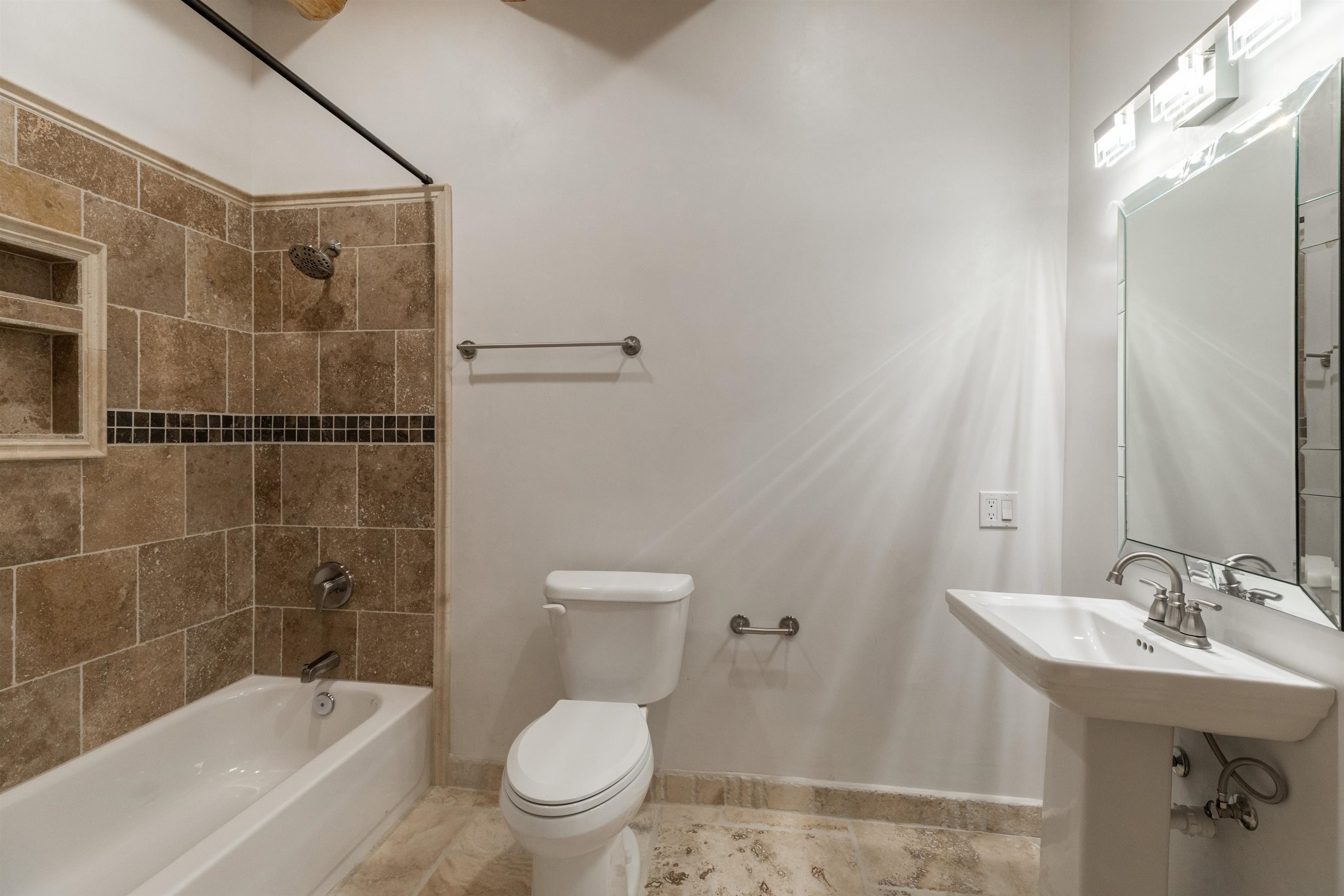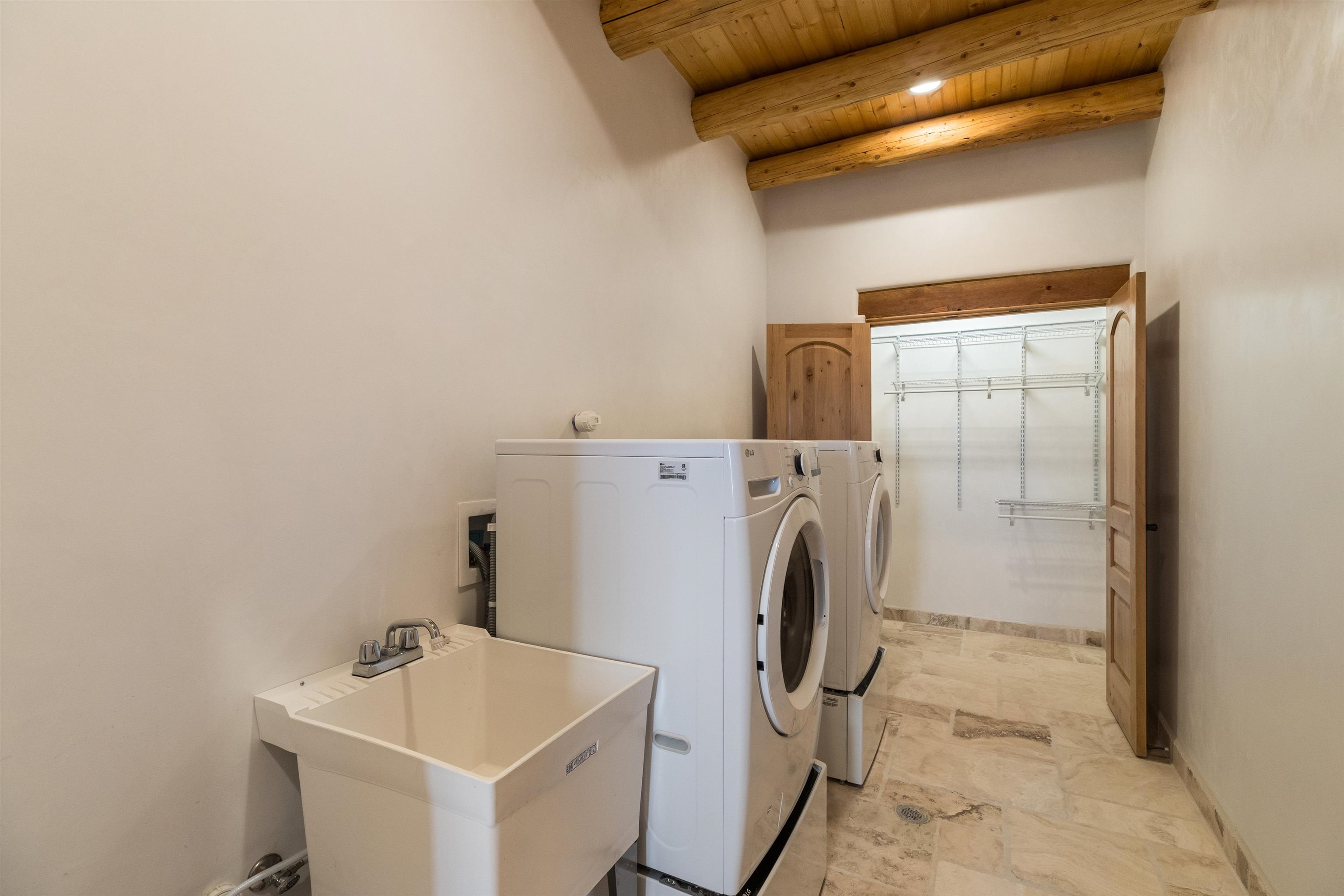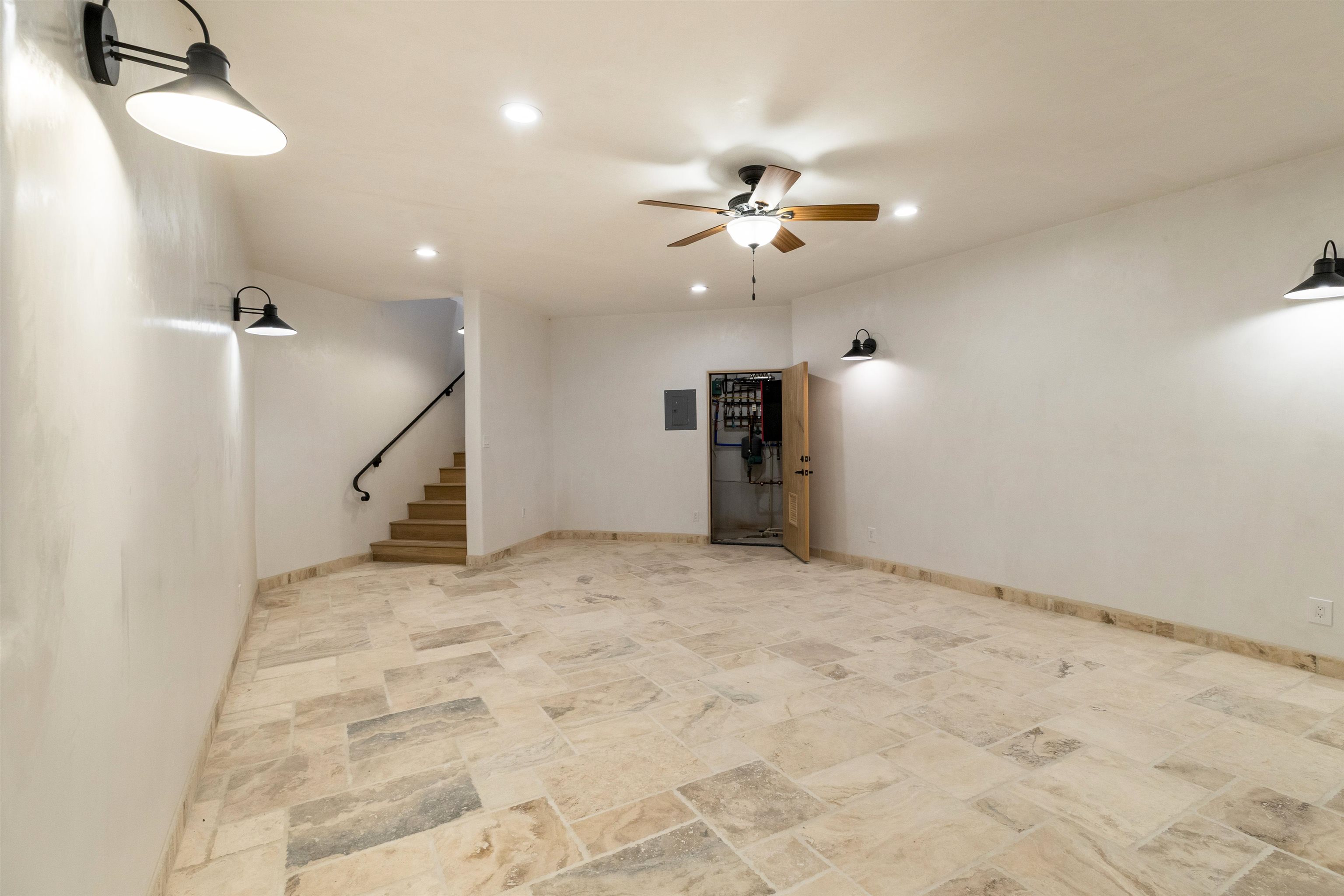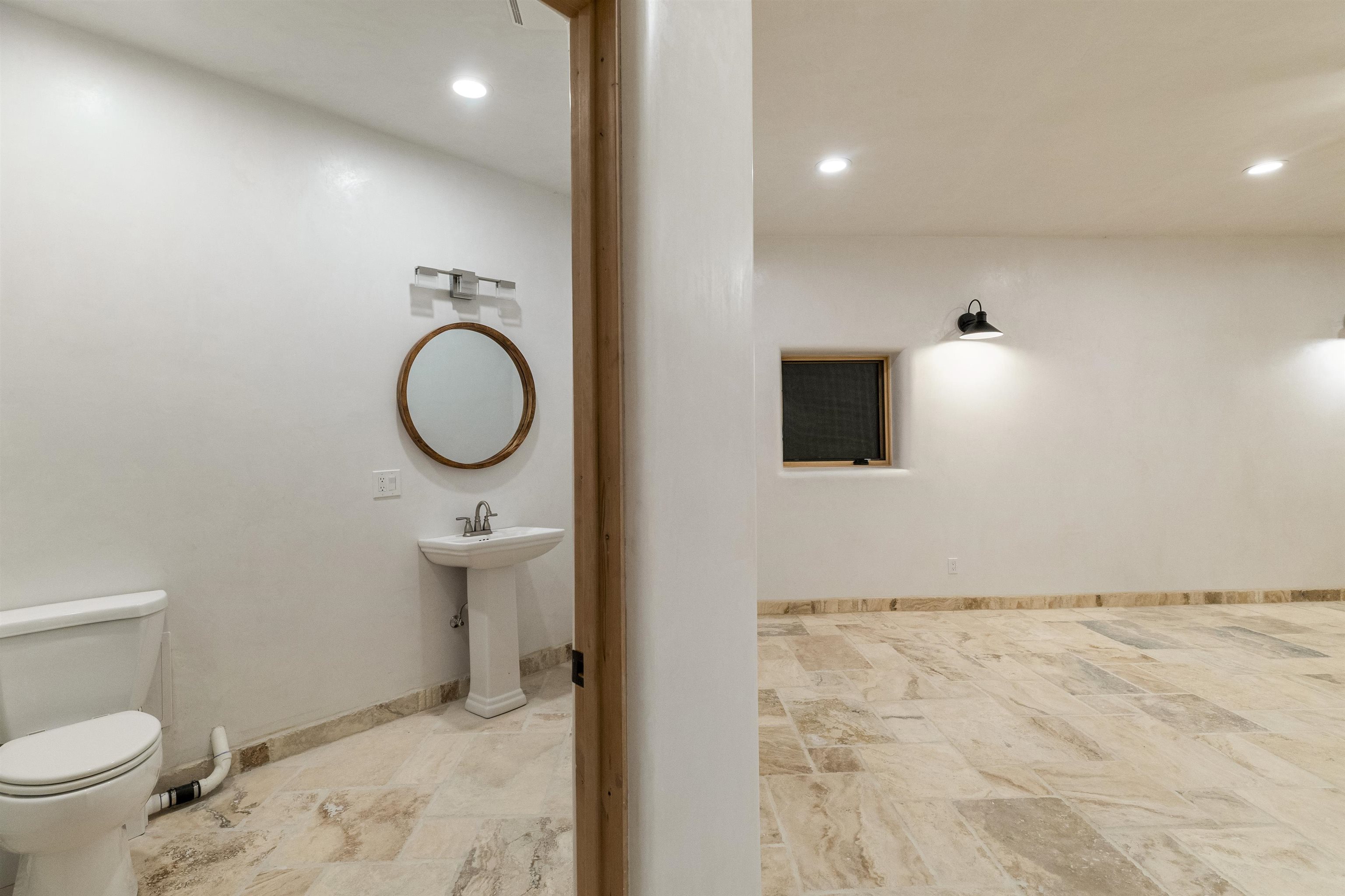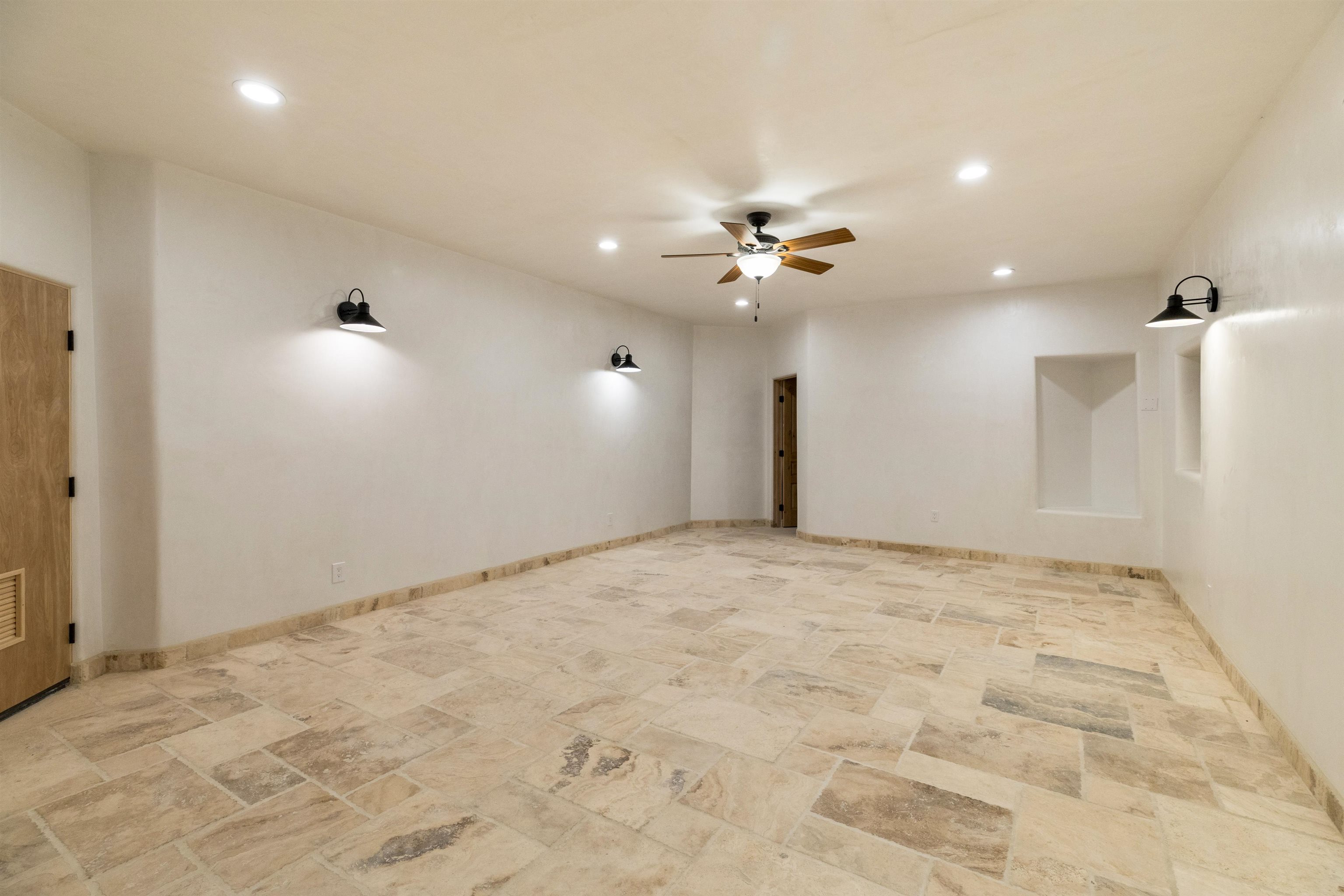 Welcome to your brand-new sanctuary blending authentic Southwestern design with refined modern touches at 1411 Maestas Road, a never-lived-in custom home set on a one-acre lot in the coveted Weimer neighborhood, offering immediate access to healthcare, shopping, and daily essentials while still feeling peacefully private. From the moment you step inside, you’ll feel the quality and care poured into every detail. Travertine natural stone flooring runs throughout the home, paired with rich oak hardwood floors in the great room and stunning viga and tongue-and-groove ceilings, hand-carved corbels, and custom wrought-iron railings that bring timeless Taos character to life. Radiant in-floor heating with three separate zones keeps the home cozy year-round with effortless efficiency. The kitchen invites connection and conversation with its open floor plan design, complete with quality finishes, stainless steel appliances, a gas cooktop, breakfast nook, full dining area, beautiful views, and a generous walk-in pantry for easy everyday living. With blinds already installed, this home is truly move-in ready. Thoughtfully designed with both beauty and flexibility in mind, the home offers two bedrooms, two full baths, and two half baths, along with a versatile flex space that can function as a home office or an additional bedroom depending on your needs. An oversized laundry room with front-load washer and dryer and a finished basement entertainment space with egress and a half bath provide additional comfort and adaptability…ideal for guests, movie nights, or a creative studio. Both bedrooms feature direct outdoor access. The primary suite is a peaceful retreat with a private courtyard, a travertine walk-in shower, an oversized soaking tub, and a spacious walk-in closet. Step outside and take in sweeping Taos Mountain views from the wraparound flagstone patio, offering multiple spaces to relax, dine, or entertain while enjoying the natural surroundings. An attached two-car garage adds everyday convenience. The Dos Arroyos Walking Trail is just down the driveway and offers scenic mountain views perfect for a short walk or hike. Ideally located just minutes from town amenities, approximately 5 miles from Taos Plaza and 30 miles from Taos Ski Valley. A home where timeless Taos design meets modern luxury, ready to welcome its very first owner.