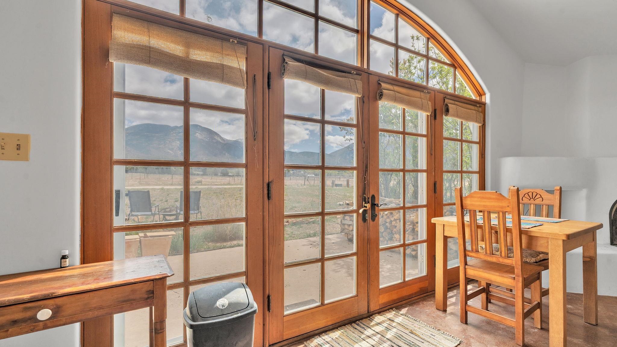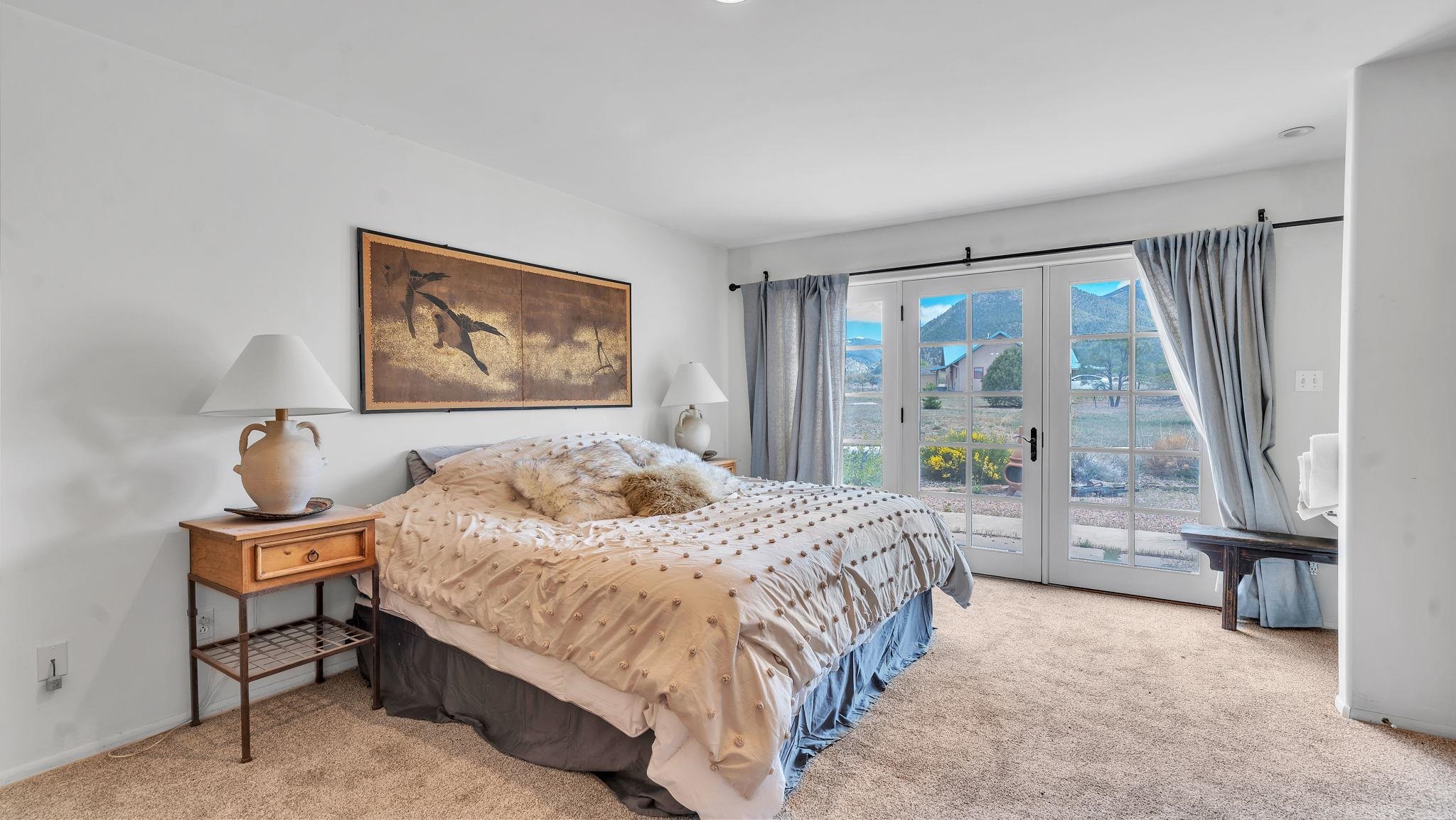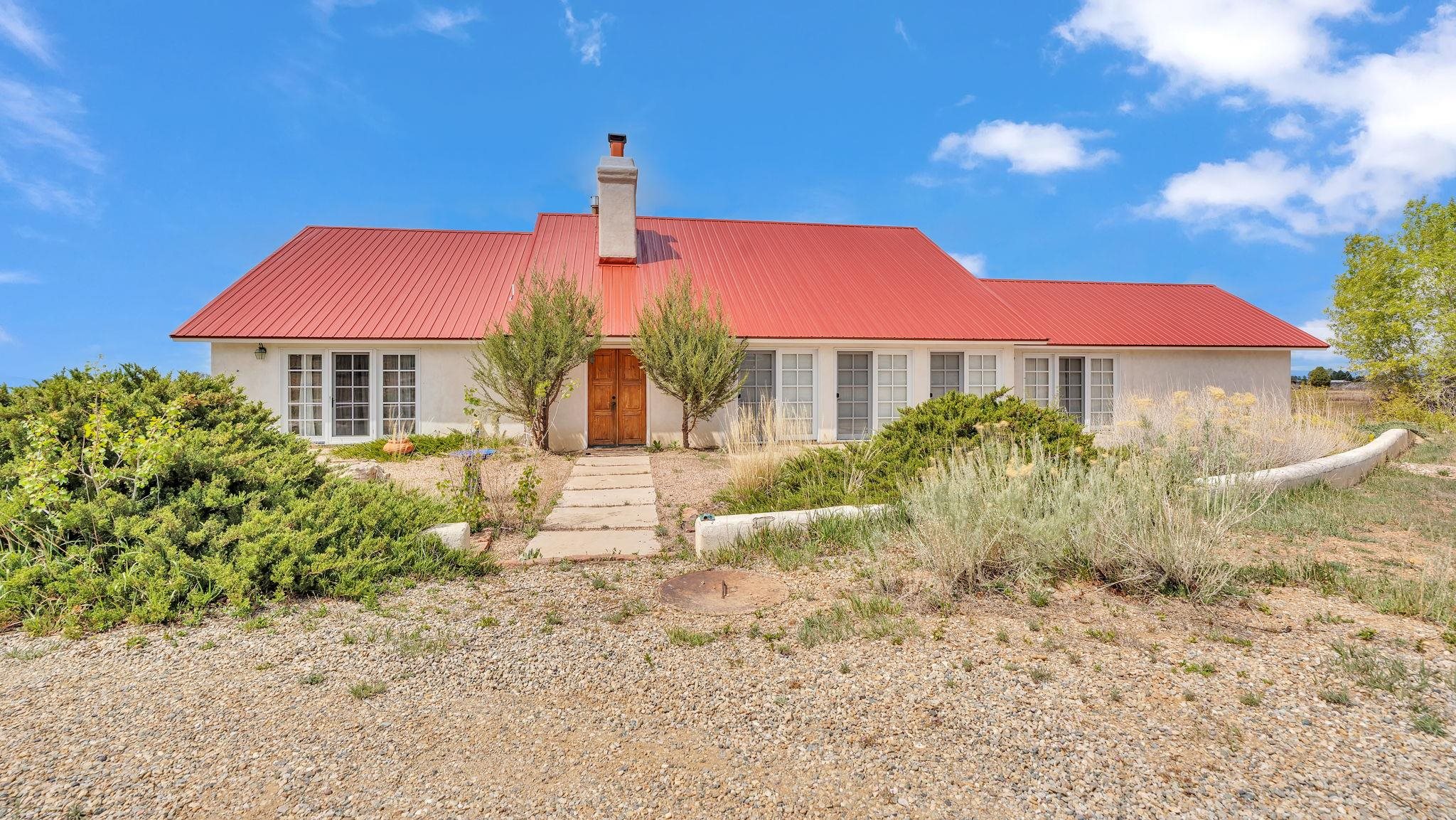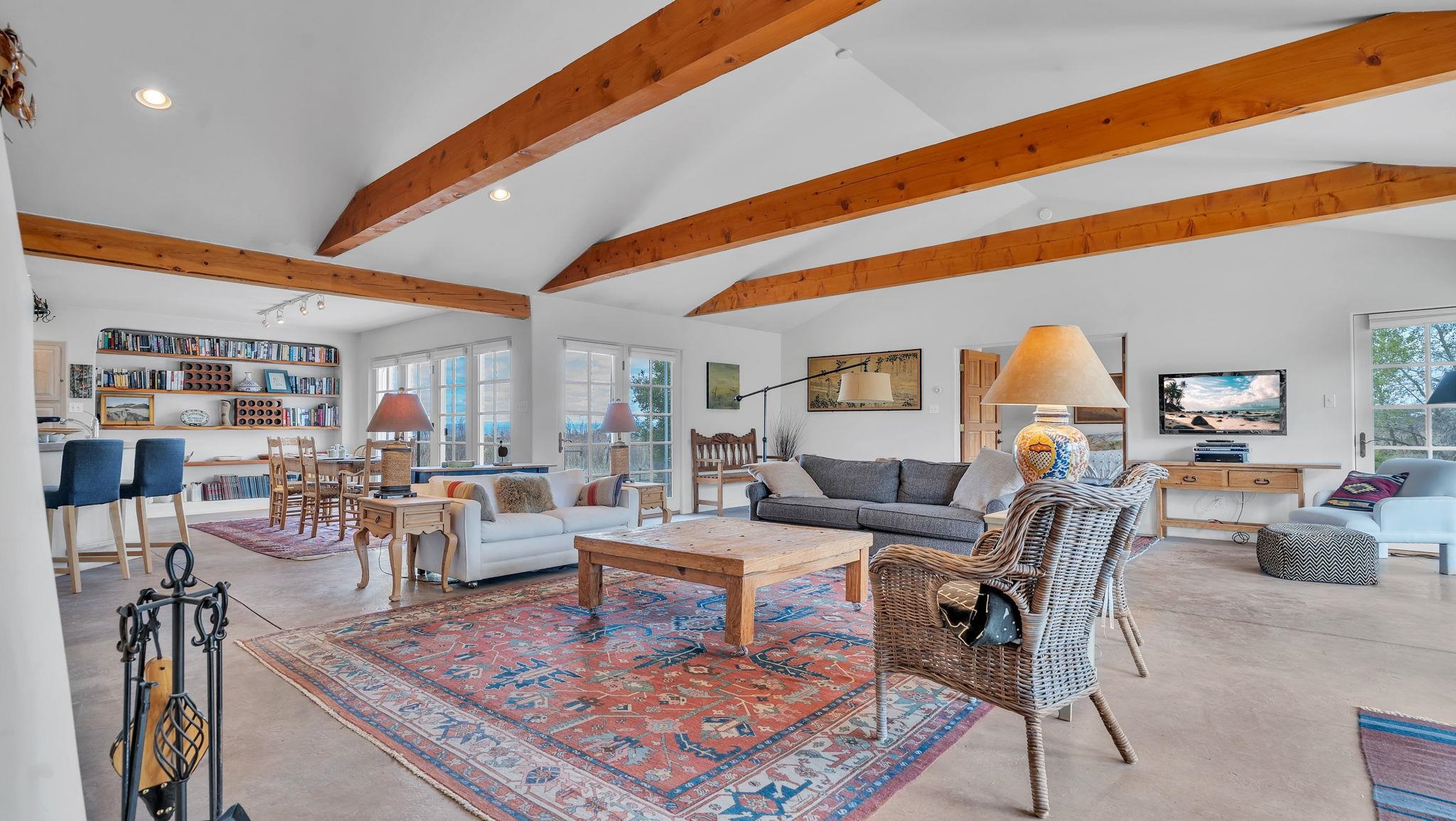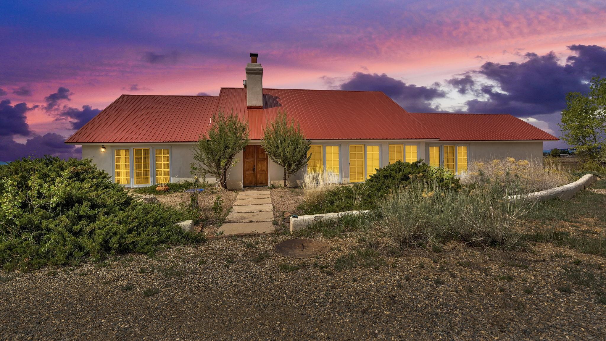 Nestled in the heart of Arroyo Seco, this expansive estate featuring a beautifully designed two-bedroom main residence and a charming two-bedroom casita offers a refined blend of modern elegance and timeless Northern New Mexico allure. Inside, the home unfolds into a light-filled living space defined by soaring vaulted ceilings and exposed wood beams that create both architectural drama and warmth. The elevated ceilingline enhances volume and airiness, while the natural timber detailing brings a grounded, mountain-modern sophistication. At the center, a statement fireplace inspired by the French countryside anchors the room, offering an inviting focal point for quiet evenings and elevated entertaining alike. The open-concept layout flows effortlessly into a thoughtfully designed kitchen, where a custom statement hood and distinctive tilework add an artistic, high-end touch. Expansive windows frame panoramic mountain views, creating a seamless connection between indoor living and the surrounding landscape. Designed for both comfort and efficiency, the home features modern concrete radiant heated flooring throughout. Along the property boundary, there is a traditional acequia. Outside you can experience breathtaking 360-degree views of surrounding peaks and valleys, all while enjoying the privacy of a quiet dead-end road setting. A two-car garage and a recently installed new roof complete the offering, delivering both convenience and peace of mind. A truly rare and elevated retreat in the enchanting landscape of Arroyo Seco—where design, comfort, and natural beauty exist in perfect harmony!