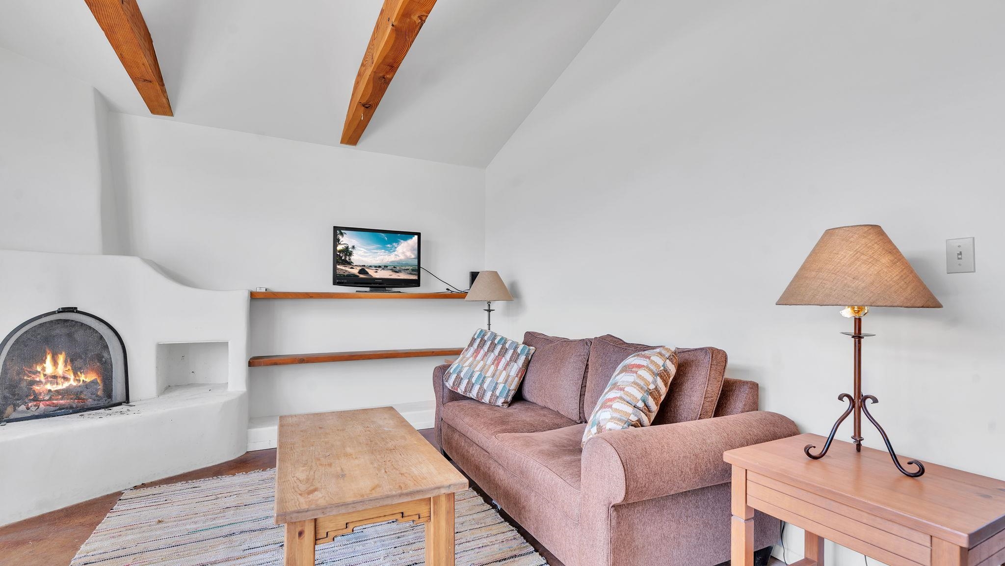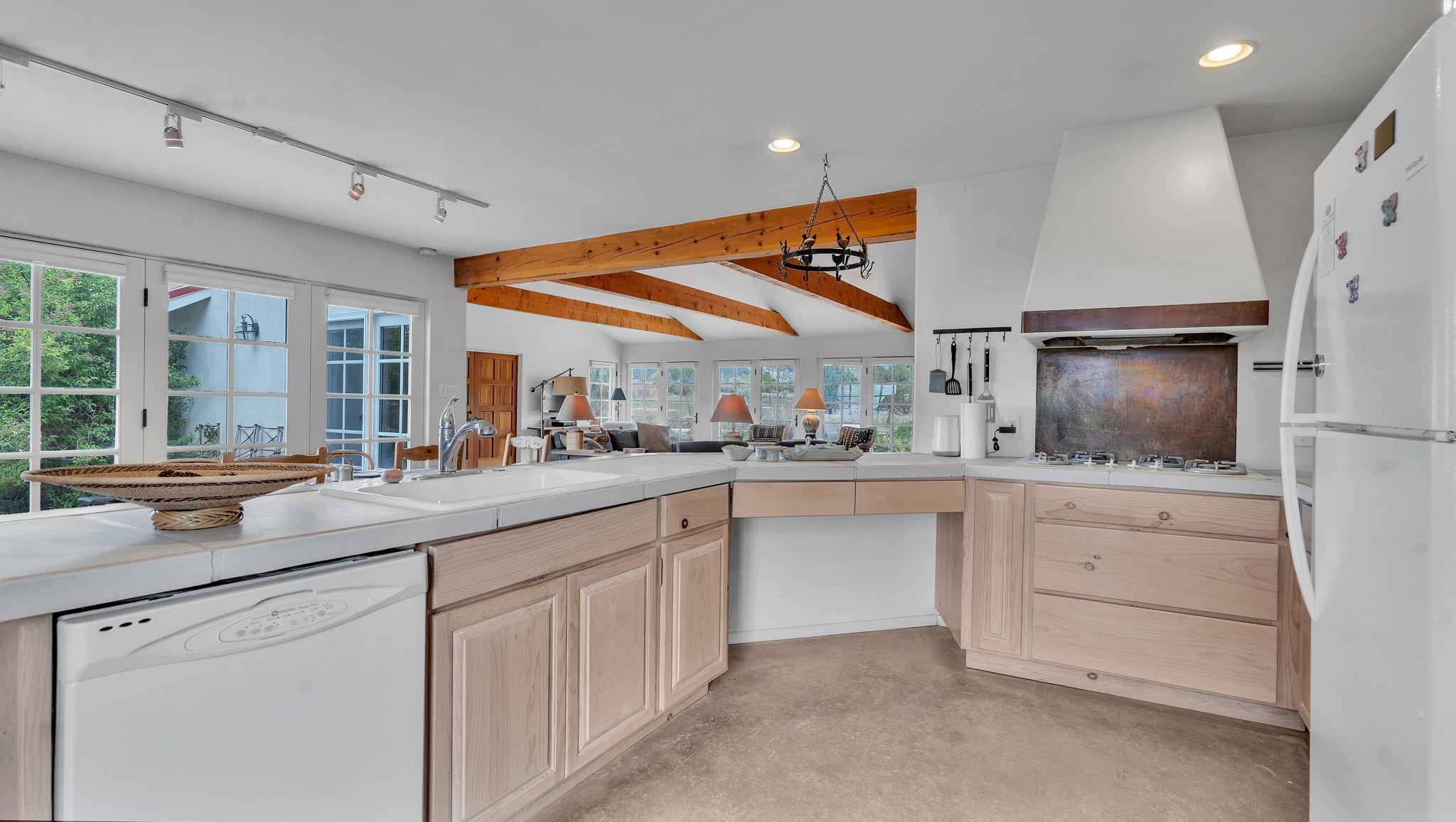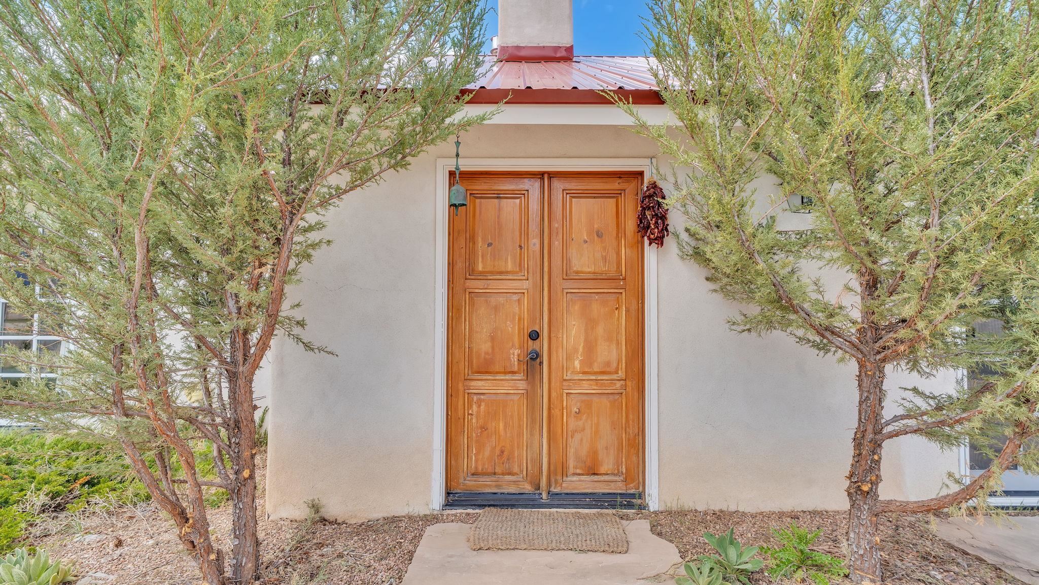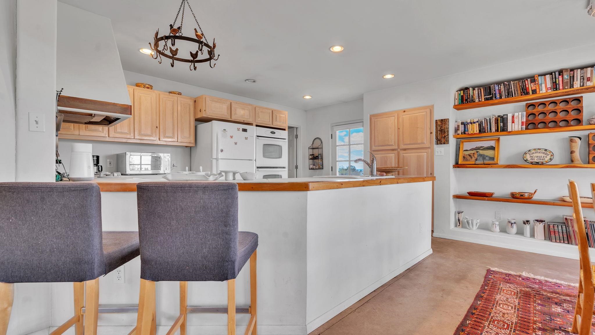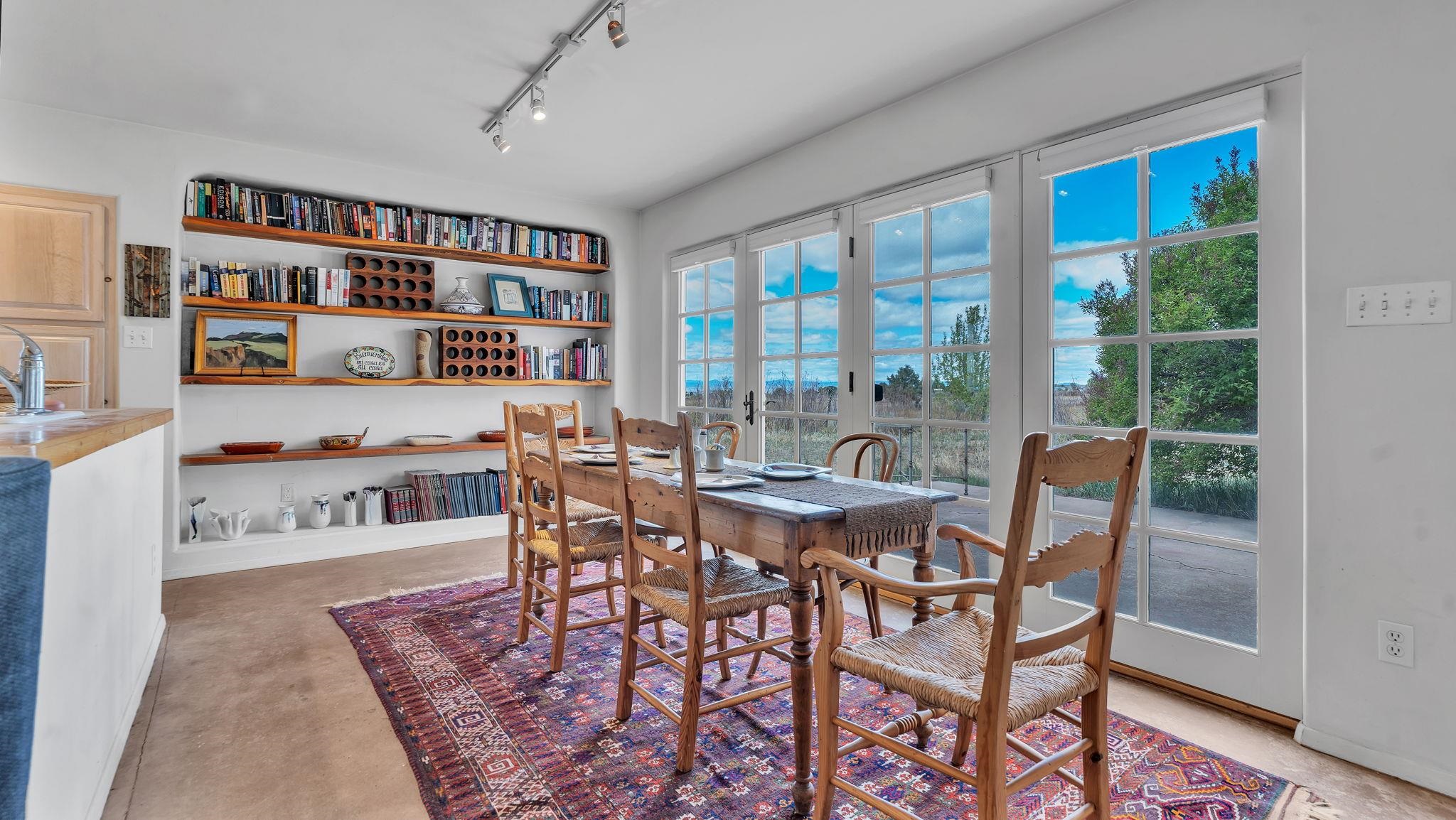 Nestled in the heart of Arroyo Seco, this expansive estate featuring a beautifully designed two-bedroom main residence and a charming two-bedroom casita offers a refined blend of modern elegance and timeless Northern New Mexico allure. Inside, the home unfolds into a light-filled living space defined by soaring vaulted ceilings and exposed wood beams that create both architectural drama and warmth. The elevated ceilingline enhances volume and airiness, while the natural timber detailing brings a grounded, mountain-modern sophistication. At the center, a statement fireplace inspired by the French countryside anchors the room, offering an inviting focal point for quiet evenings and elevated entertaining alike. The open-concept layout flows effortlessly into a thoughtfully designed kitchen, where a custom statement hood and distinctive tilework add an artistic, high-end touch. Expansive windows frame panoramic mountain views, creating a seamless connection between indoor living and the surrounding landscape. Designed for both comfort and efficiency, the home features modern concrete radiant heated flooring throughout. Along the property boundary, there is a traditional acequia. Outside you can experience breathtaking 360-degree views of surrounding peaks and valleys, all while enjoying the privacy of a quiet dead-end road setting. A two-car garage and a recently installed new roof complete the offering, delivering both convenience and peace of mind. A truly rare and elevated retreat in the enchanting landscape of Arroyo Seco—where design, comfort, and natural beauty exist in perfect harmony!