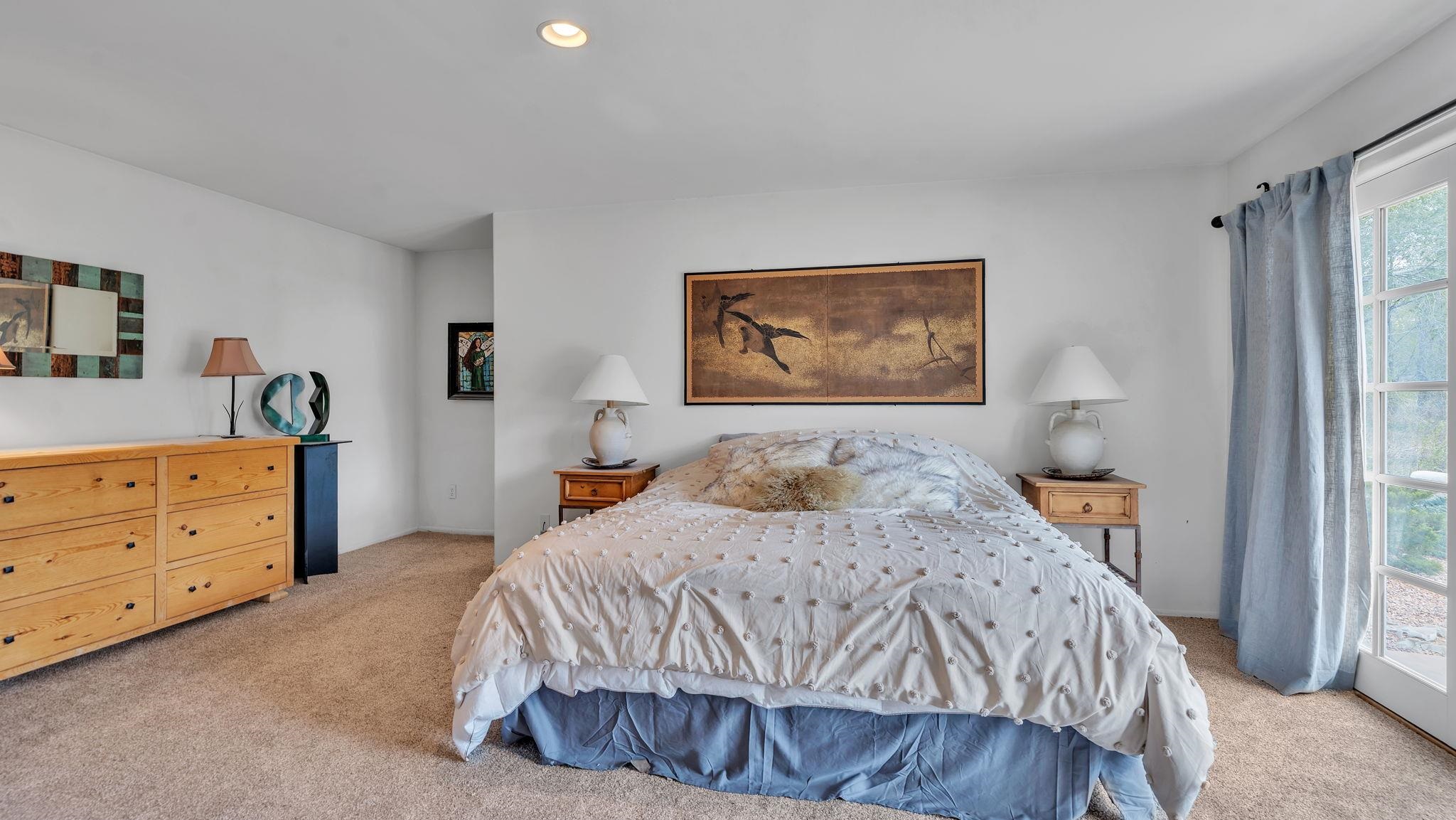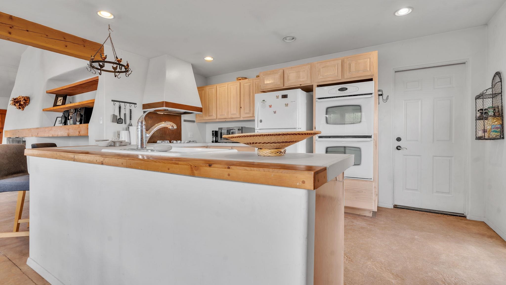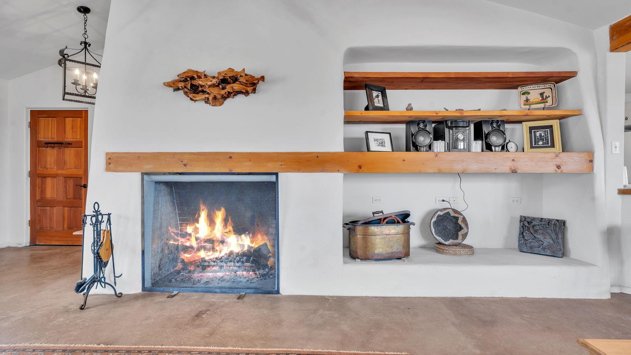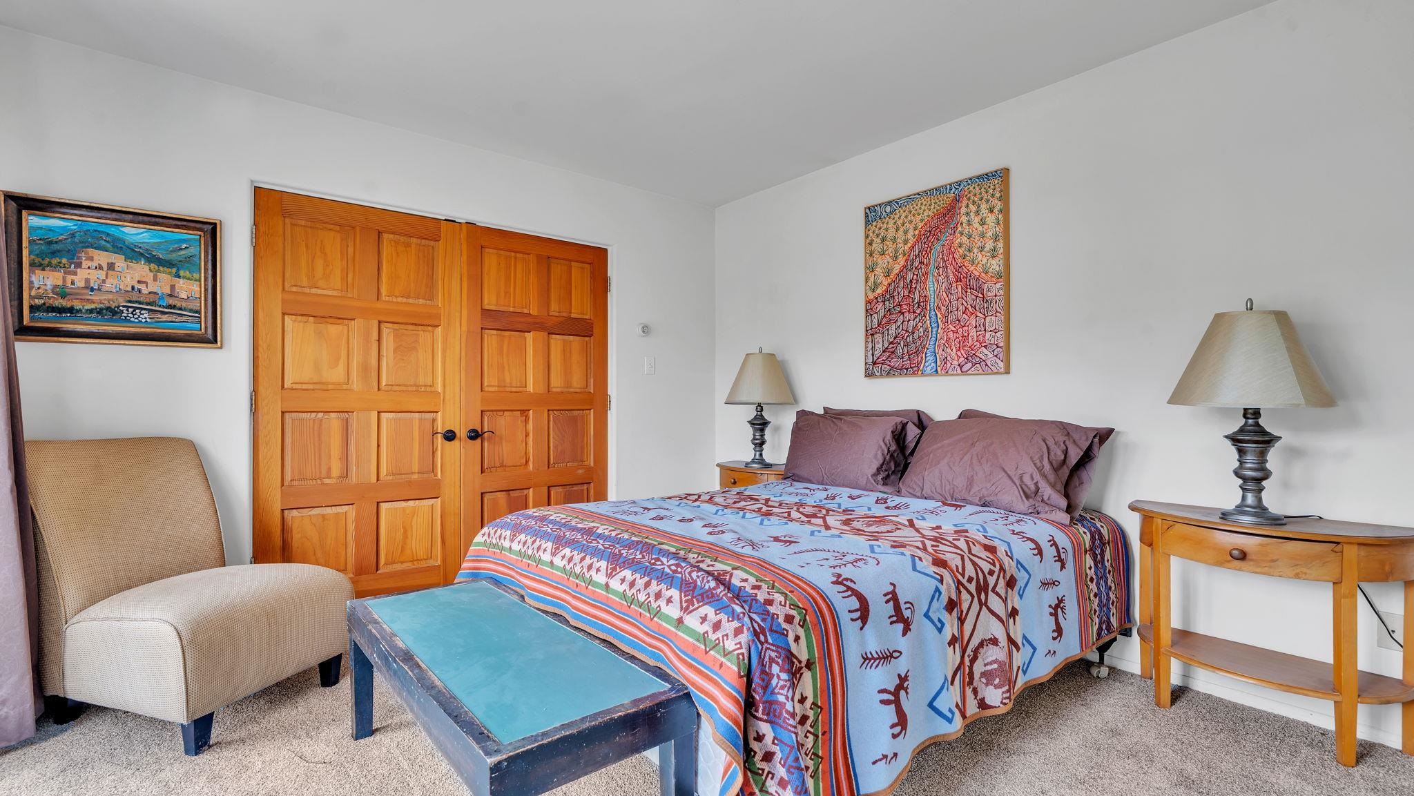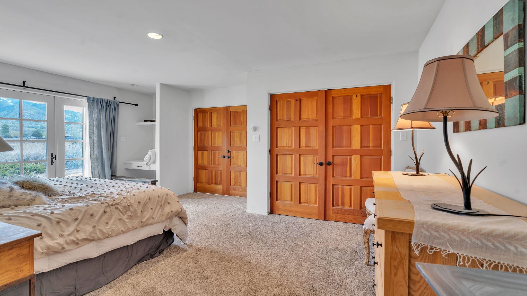 Nestled in the heart of Arroyo Seco, this expansive estate featuring a beautifully designed two-bedroom main residence and a charming two-bedroom casita offers a refined blend of modern elegance and timeless Northern New Mexico allure. Inside, the home unfolds into a light-filled living space defined by soaring vaulted ceilings and exposed wood beams that create both architectural drama and warmth. The elevated ceilingline enhances volume and airiness, while the natural timber detailing brings a grounded, mountain-modern sophistication. At the center, a statement fireplace inspired by the French countryside anchors the room, offering an inviting focal point for quiet evenings and elevated entertaining alike. The open-concept layout flows effortlessly into a thoughtfully designed kitchen, where a custom statement hood and distinctive tilework add an artistic, high-end touch. Expansive windows frame panoramic mountain views, creating a seamless connection between indoor living and the surrounding landscape. Designed for both comfort and efficiency, the home features modern concrete radiant heated flooring throughout. Along the property boundary, there is a traditional acequia. Outside you can experience breathtaking 360-degree views of surrounding peaks and valleys, all while enjoying the privacy of a quiet dead-end road setting. A two-car garage and a recently installed new roof complete the offering, delivering both convenience and peace of mind. A truly rare and elevated retreat in the enchanting landscape of Arroyo Seco—where design, comfort, and natural beauty exist in perfect harmony!